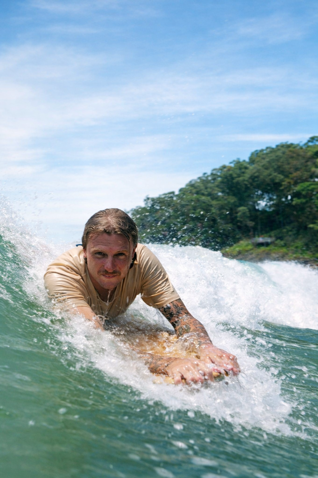 But timber isn’t just about sustainability, it performs. The added weight and natural flex of timber give belly boards excellent trim, speed, and glide. They hold their line cleanly in the wave and feel solid and connected under your body, delivering a smooth, timeless ride that foam simply can’t replicate.